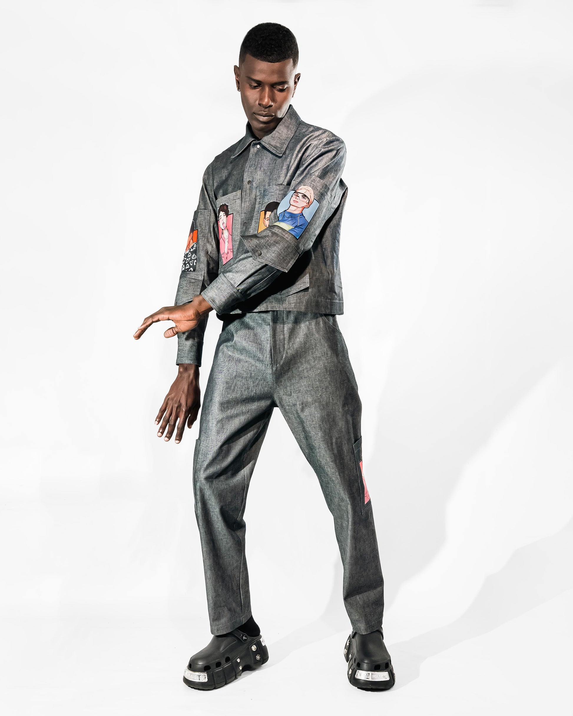 A cropped boxy fit denim jacket with gun metal press stud fastenings, patch pockets and illustrated anime print detailing.